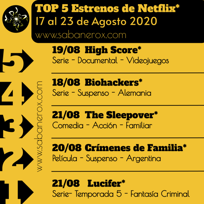 Tercera semana de Agosto, y Netflix incluye en su top 5 de estrenos para esta semana, cinco producciones originales. Estas son nuestras recomendaciones: