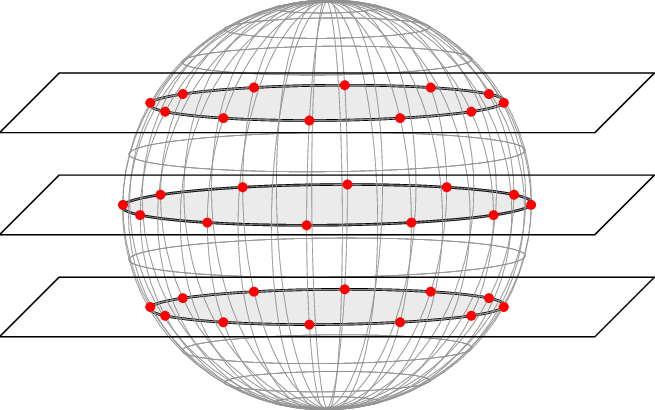 La esfera esta siendo cortada por tres planos, en cada uno de esos planos la esfera existe únicamente como un círculo, pero la esfera al tener una dimensión adicional, puede existir en los tres planos al mismo tiempo.